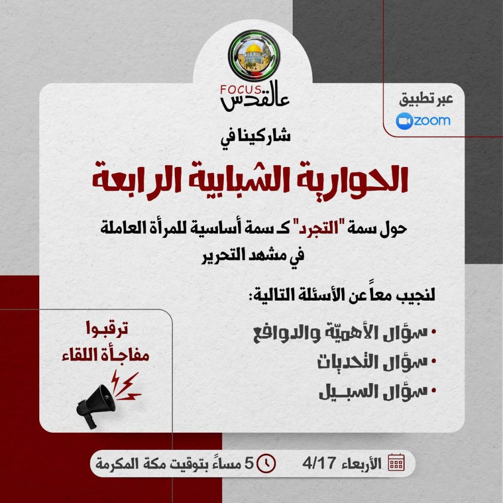 الحواريّة الشبابيّة المتعلقة بالسلسلة التي تتناول “التجرّد” كسِمَة من سِمات المرأة الفاعِلة في مشهد التحرير ونصرة الأمّة الإسلاميّة..
