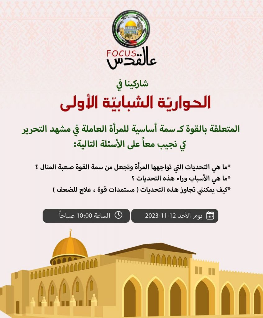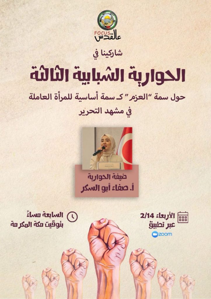 الحواريّة الشبابيّة المتعلقة بالسلسلة التي تتناول “العَزْم” كسِمَة من سِمات المرأة الفاعِلة في مشهد التحرير ونصرة الأمّة الإسلاميّة..